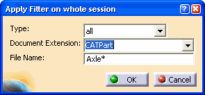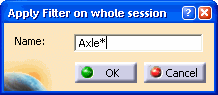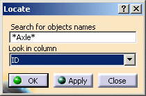 Click Apply. The instances containing the "Axle" string are highlighted in the CATIA