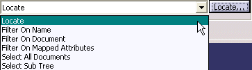list and click the Locate... button. All documents are highlighted in the CATIA