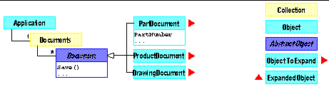 You can learn from the diagram above that the Application object aggregates a Documents collection. The Documents collection aggregates any number of Documents. The Document object is an abstract object, and only its derived types can actually be created, that is: