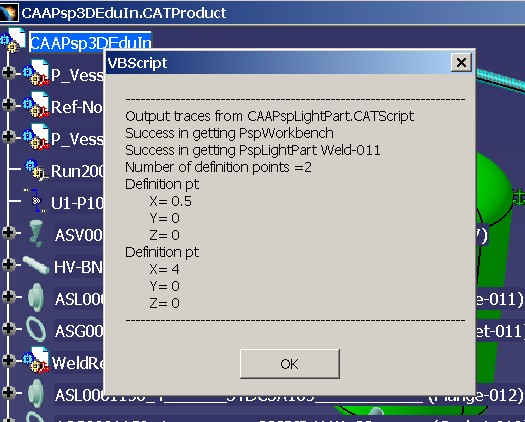 Get a Light Part ObjectUsing the objPrdRoot as the node, the macros processes the Products collection to get a product whose instance name is "Weld-011". It uses GetInterface method of objPspWorkbench to get CATIAPspLightPart interface handle on the light part object. ...