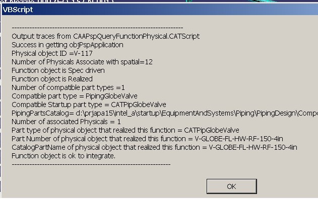 Get a Physical ObjectUsing the PspAppFactory method ListPhysicals, it obtains a list of physical objects in the Piping domain under the root product. Note that the output of this method is a list of objects. The member of this list can be retrieved using the Item method. The second argument of this method specifies a particular interface to be returned on this object. It then uses the first physical object and obtains a CATIAPSpPhysical interface handle on the object ...