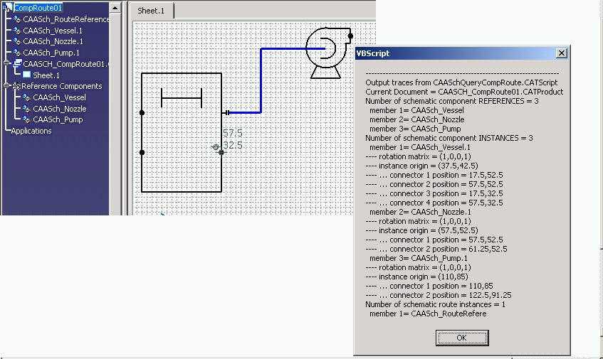 CAASchQueryCompRoute.CATScript is located in the CAAScdSchUseCases module. Execute macro (windows only). |