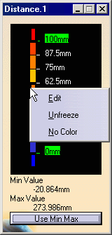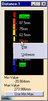 Use Min Max button in the Distance.1 dialog box.