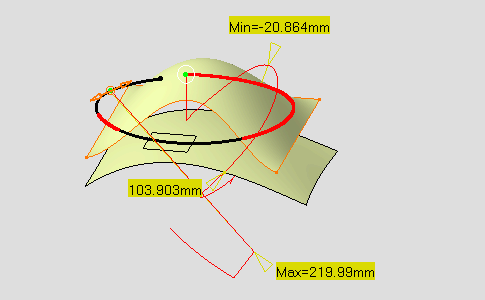 intersection of the plane containing that curve. Available only when