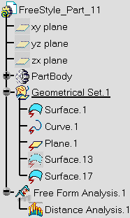 in the specification tree under the Free Form Analysis.1