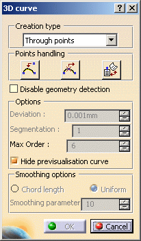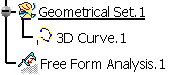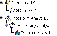 The analysis is not persistent. Thus when you click OK in the 3D curve dialog box to create the curve, the Temporary Analysis node disappears from the specification tree. |