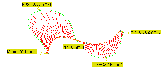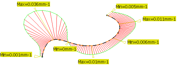 The Temporary Analysis node is displayed in the specification tree and the associated analysis (here Curvature Analysis.1) appears below. |