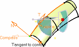 They allow you to redefine the surface limits on the spine/guide. These points show up only when the surface extends beyond the reference profile, when selected, and are limited by the spine or guide's length. |