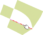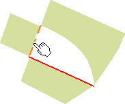You can also fill the space between two intersecting curves, or surfaces, forming an open angle. To do this, simply select these curves or surface boundaries, then click Apply in the Fill dialog box. The system automatically creates temporary curves matching the selected ones to close a contour before filling it. |